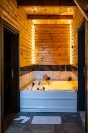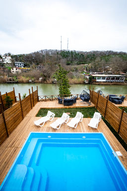 Family rooms with river view are completely wooden and independent from each other. It has two specially designed double beds, each with a mezzanine floor. Each has its own balcony and a swing on the balcony. The room has a fireplace. Our guests can get all kinds of service to their room with the call waiter button.